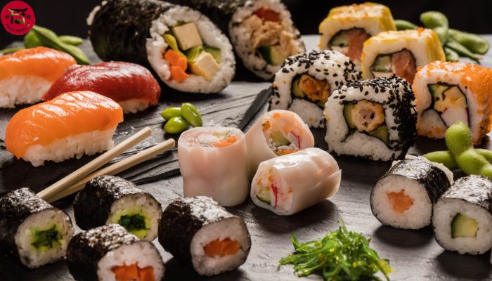 6. Sushi: Món ăn nổi tiếng trở thành biểu tượng của xứ sở mặt trời mọc. Tại Nhật Bản, thực khách có cơ hội thưởng thức sushi chuẩn vị nhất với những loại cá tươi ngon kèm rau sống. Tinh hoa ẩm thực Nhật bản còn thể hiện ở cách trình bày và văn hoá ăn uống luôn được sắp xếp cầu kỳ, tỉ mỉ với nhiều màu sắc.