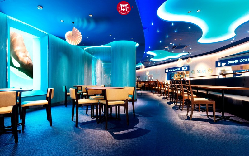 Nơi đầu tiên chúng tôi muốn giới thiệu là "Ocean," địa điểm duy nhất ở Nhật Bản cho phép bạn vừa thưởng thức bữa ăn vừa ngắm nhìn cá voi sát thủ. Với không gian nội thất mát mẻ mang tông màu xanh lam, các bàn ăn được bố trí xung quanh một bể cá voi sát thủ. Đồ ăn ở đây được phục vụ theo phong cách food court, bao gồm đủ loại từ hải sản đến thịt. Các món ăn sử dụng sản phẩm nông nghiệp và hải sản thu hoạch tại Boso, mang đến thực đơn được lựa chọn kỹ lưỡng.